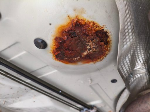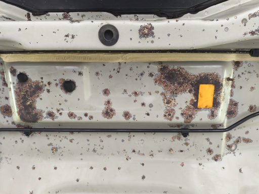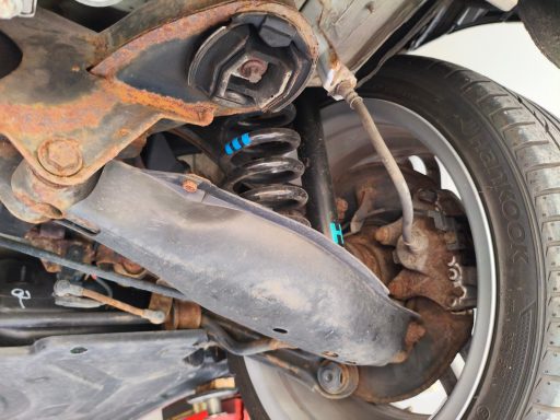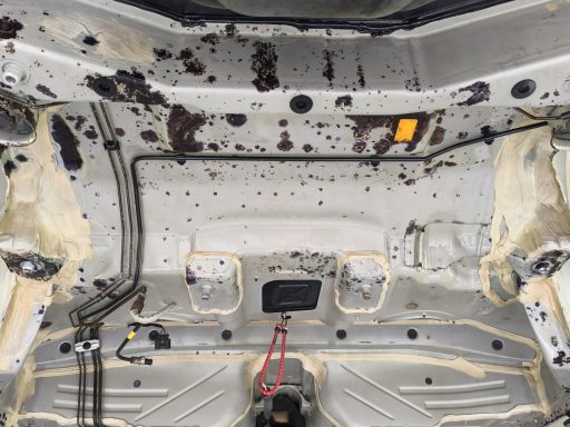 Der Unterboden war stark vom Rost befallen. Nach der Demontage aller sich am Unterboden befindlichen Teile und Baugruppen wurde der Unterboden trockeneisgestrahlt. Danach kam der Neuaufbau mit entsprechendem Rostschutz, Lack und transparentem Unterbodenwachs.
